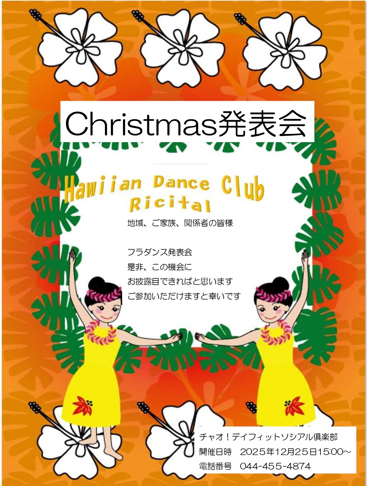 クリスマスイベント/デイサービスの利用者によるフラダンス発表会のおしらせ